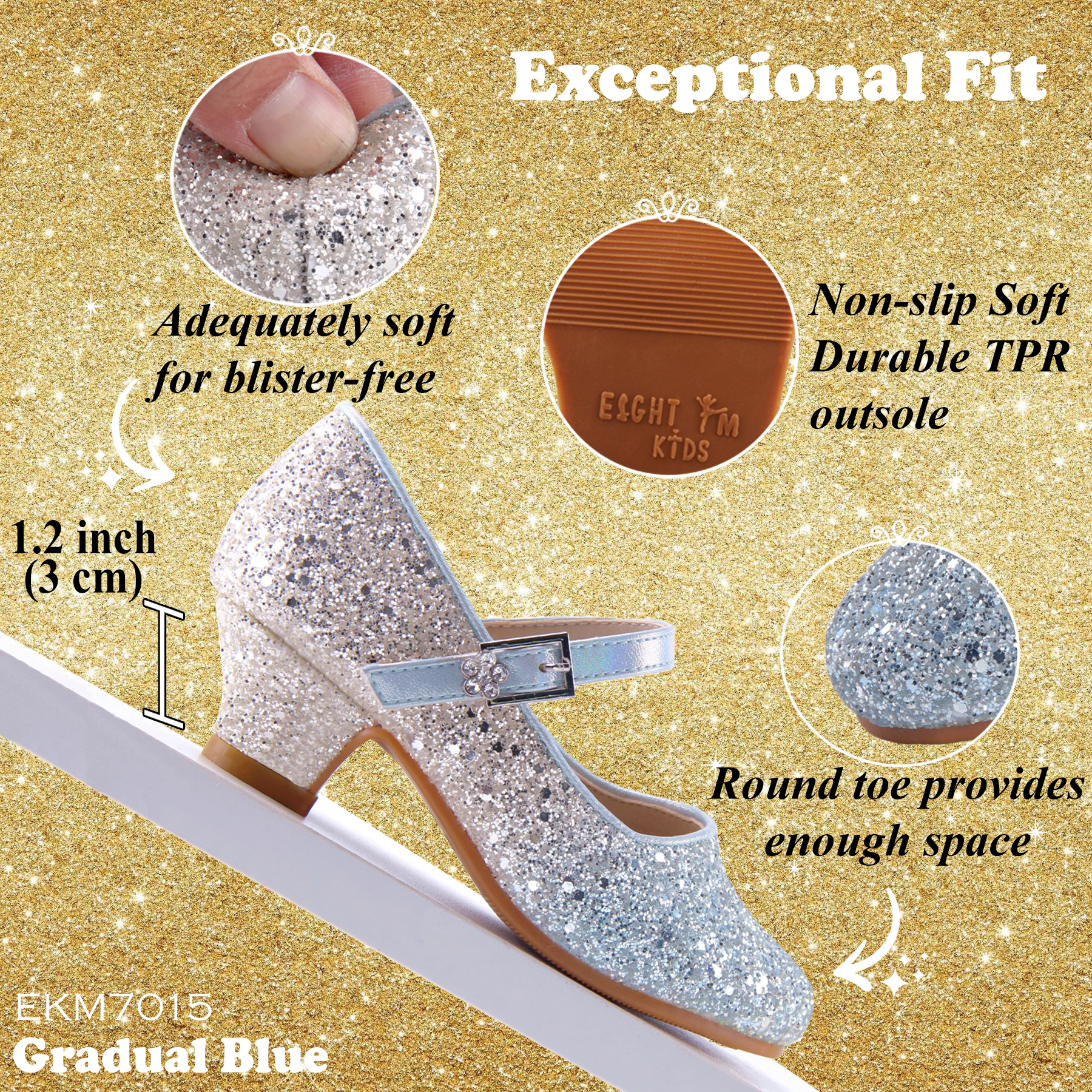 EIGHT KM Girls High Heel Dress Shoes Mary Jane Wedding Party Pumps Princess Shoes EKM7015 Gradual Sparkle Glitter Color