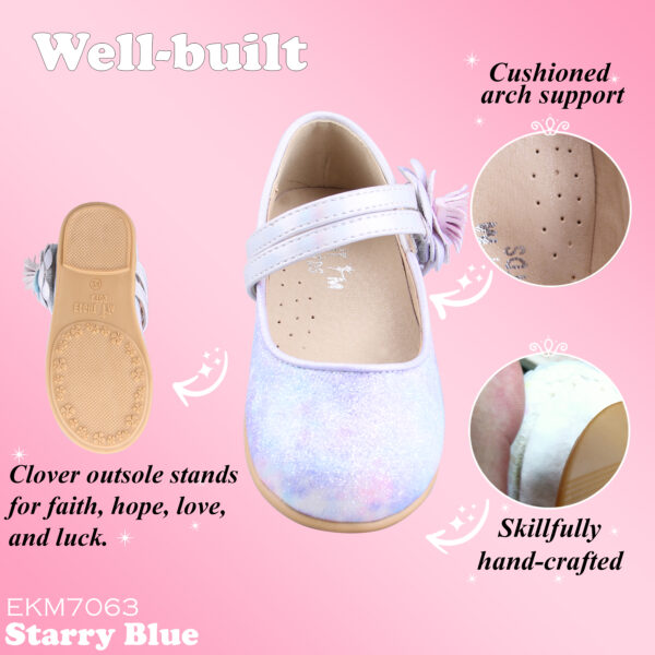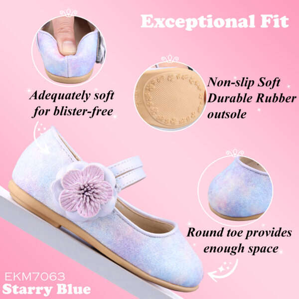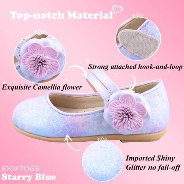 EIGHT KM Toddler Girls Dress Shoes Mary Jane Princess Wedding Ballerina Flats Shoes EKM7063 Sparkly Glitter Flower Camellia Starry Blue