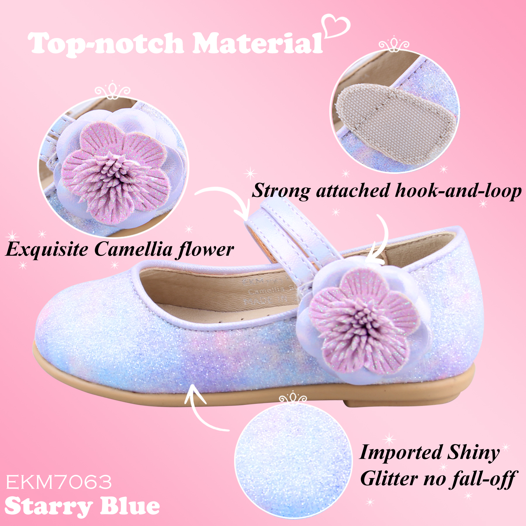 Lovely and comfortable with every step your girls take! The imported strong hook-and-loop strap closure makes our flats shoes both functional and fun! With our mission to let our girls stand out among the others, we created our designs that will embody and execute our hope that every girl will find her individuality and accept others to make life full of love and hope.